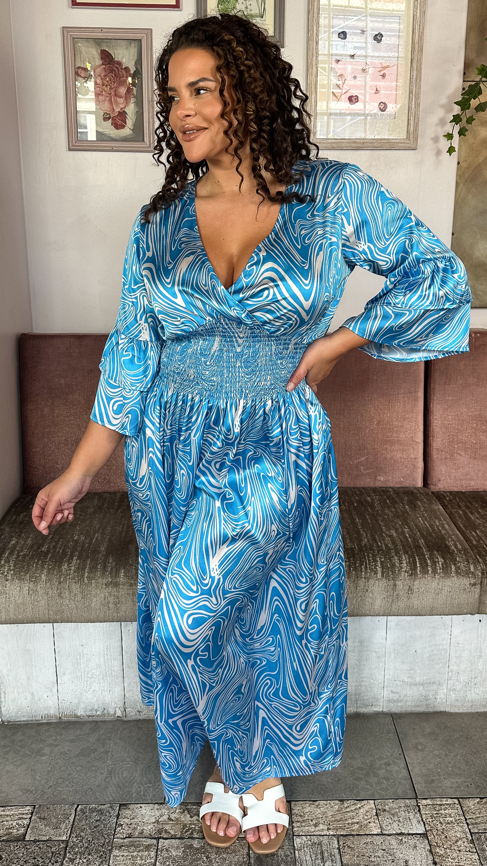 Light blue v neck dress online, CurveWow Shirred V Neck Maxi Dress Light Blue Curvewow online